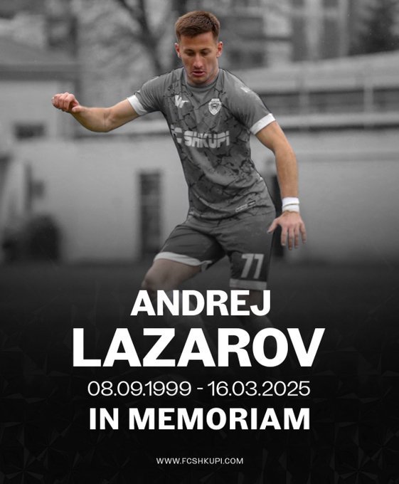 Fotbalistul Andrej Lazarov, jucător la KF Shkupi în prima divizie macedoneană, a murit în urma incendiului izbucnit, în noaptea de sâmbătă spre duminică, la clubul Pulse din Kocani, în Macedonia de Nord. El şi-a pierdut viaţa în timp ce încerca să ajute alte persoane să iasă din club.